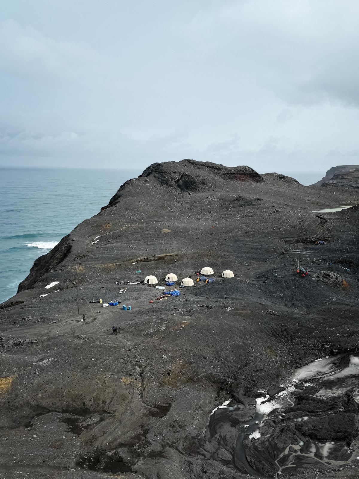 No hay campamento en la zona inferior debido a la vida silvestre. Desde que visitamos Bouvetøya la última vez, el calentamiento global ha hecho que el glaciar retroceda, por lo que las focas y los pingüinos ahora ocupan una gran área de Cabo Fie, incluso hasta 3-400 metros cuesta arriba.